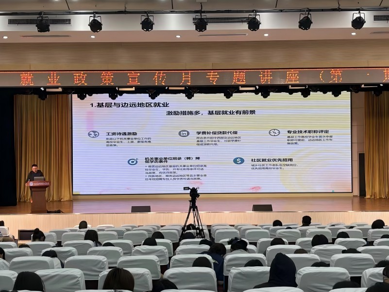 政策解读是本次讲座的重要内容。赵永茂科长对国家及地方促进高校毕业生就业的一系列政策进行了全面且细致的讲解,涵盖就业补贴、创业扶持、基层就业项目等多个方面。针对同学们普遍关心的 “三支一扶”“西部计划”“乡村医生”等基层就业政策,赵科长详细介绍了报名条件、服务内容及发展前景;对于创业政策,他从资金支持、场地保障、税收优惠等角度展开说明,鼓励有创业意愿的同学勇于尝试。