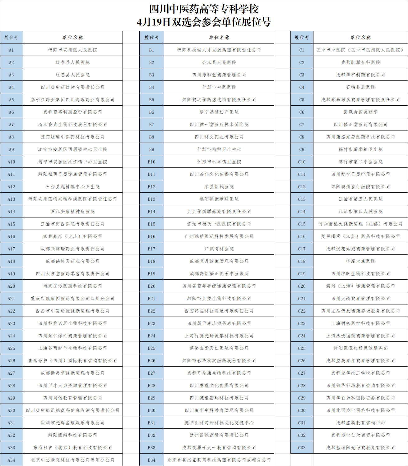 2025届毕业生春季双选会展位号